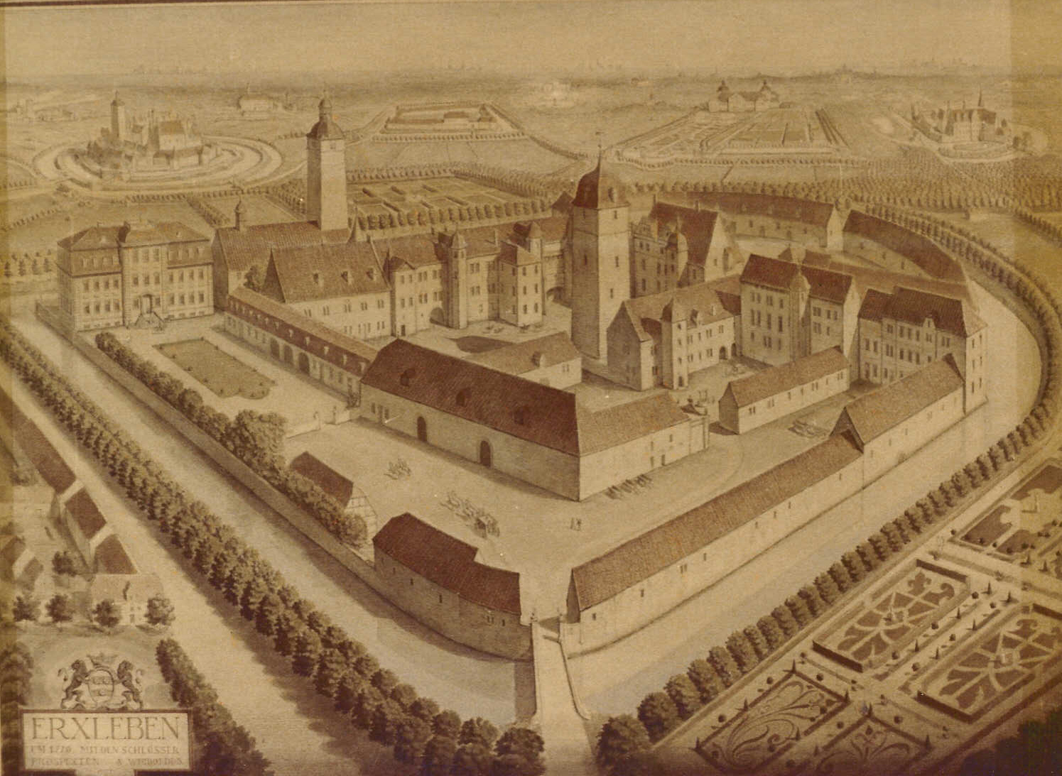 - Erxleben. In: Alexander Duncker (Hrsg.): Die ländlichen Wohnsitze, Schlösser und Residenzen der ritterschaftlichen Grundbesitzer in der preußischen Monarchie nebst den königlichen Familien-, Haus-, Fideicommiss- und Schattull-Gütern. Band 1. Duncker, Berlin 1857, Blatt 30 (zlb.de).